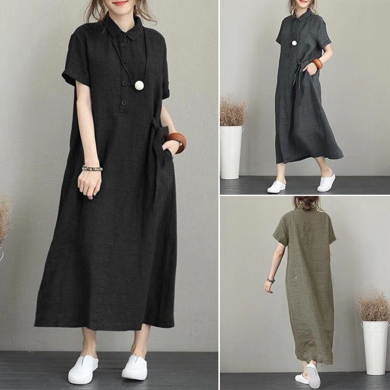 カジュアルシャツワンピース リネン半袖ワンピース ゆったりワンピース ロングワンピース トップス スカート ワンピース シャツ ブラウス プルオーバー オールインワン ロングスカート フレアスカート 膝下 ロング ロング丈 マキシ マキシ丈 9分丈 アンクル丈 袖あり 半袖 5分袖 五分袖 Vネック 襟付き スリム Aライン スマート かわいい 大人可愛い きれいめ シンプル カジュアル 大人 上品 おしゃれ お洒落 レトロ 大人可愛い 大人女子 こなれ感 キュート ガーリー ルーズ クール モード系