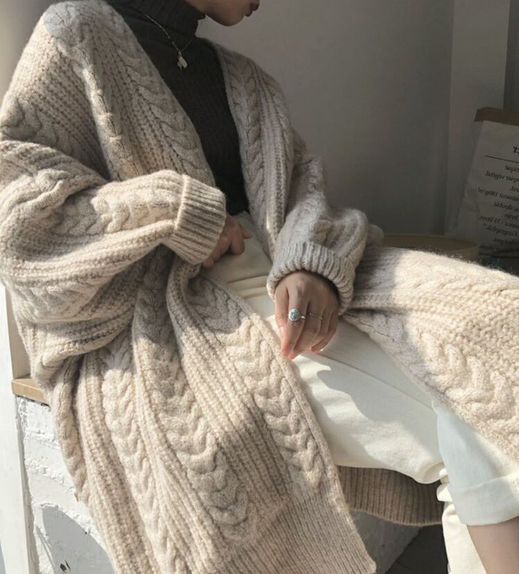厚手ニットセーター オーバーサイズアウター ルーズニットカーディガン カジュアルカーディガン トップス ニットソー セーター カーディガン ロング ロング丈 袖あり 長袖 ボリューム袖 Vネック ワイド Iライン スマート 前開き ケーブルニット ニット かわいい 大人可愛い きれいめ シンプル カジュアル 大人 上品 おしゃれ お洒落 大人可愛い 大人女子 こなれ感 ラフ ガーリー ルーズ クール モード系 エレガント モダン 主役級 存在感 秋 冬 20代 30代 40代 50代 レディース 女性用
