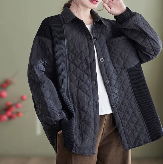 個性的 ゆったり トップス ジャケット 袖あり 長袖 襟付き ワイド ボタン 前開き キルティング 厚手 シンプル カジュアル 大人 上品 おしゃれ お洒落 かっこいい レトロ こなれ感 ラフ マニッシュ エレガント モダン 無地 柄 ストライプ 秋 冬 10代 20代 30代 40代 50代 60代 レディース 女性用 OL 通勤 学生 通学 デート お出かけ お泊まり 休日 アウトドア リゾート 旅行 高原 ホテル ガーデン 着回し 普段使い 暖かい 防寒 サイズ M L XL 2XL 色 黒 カーキ