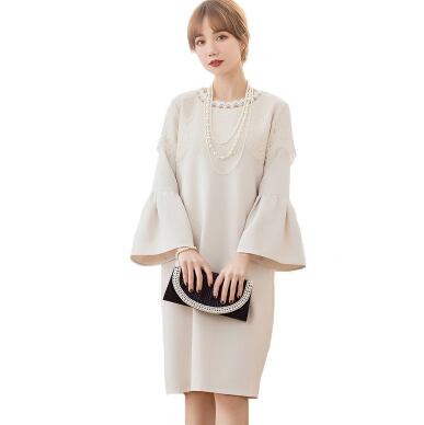 ハレの日に最適な、サイズ豊富でカラーも豊富な膝丈ワンピース。レースを使った切り替えデザインが上品で可愛らしさもあり、ラウンドネックとストレートIラインでシンプルながらも女性らしさが漂う一枚です。