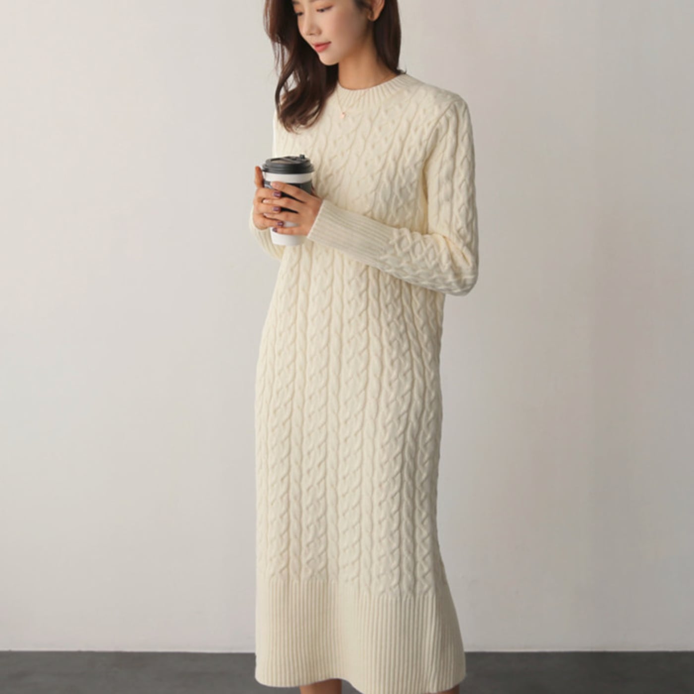 スリットの入ったニットワンピース