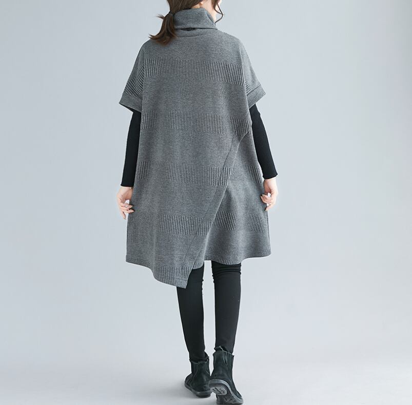 ワンピース 個性的 大きいサイズ ひざ丈 半袖 ハイネック タートルネック Aライン アシンメトリー ニット きれいめ シンプル カジュアル 大人 上品 おしゃれ お洒落 かっこいい レトロ 大人可愛い 大人女子 マニッシュ ルーズ 存在感 抜け感 無地 秋 冬 10代 20代 30代 40代 50代 お出かけ 公園デビュー 女子会 お泊まり 休日 イベント リゾート 旅行 高原 ホテル ガーデン レストラン 着回し 普段使い 重ね着 楽ちん 暖かい モテ 体系カバー L XL ゆったり ゆる 黒 グレー