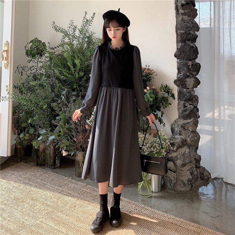 クラシカルワンピース フェイクツーピースワンピ ニット重ね着風 お嬢様デザイン スカート ワンピース オールインワン ロングスカート フレアスカート ロング ロング丈 7分丈 ミディアム丈 袖あり 長袖 パフスリーブ Uネック ラウンドネック スリム 細身 Aライン スマート フリル リボン ベルト ウエストマーク ウエストリボン ハイウエスト かわいい 大人可愛い きれいめ シンプル カジュアル 大人 上品 おしゃれ お洒落 レトロ 大人可愛い 大人女子 こなれ感 ガーリー クール モード系