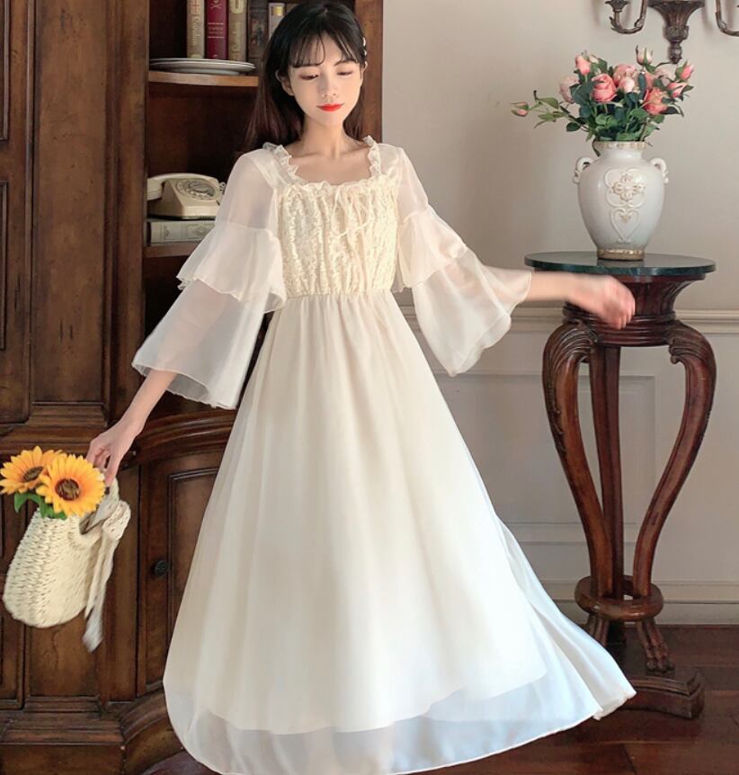 ワンピース デート モテアイテム シフォン フレアワンピース リボン レース 大人可愛い きれいめ 上品 おしゃれ かっこいい 大人可愛い ラブリー キュート ガーリー クール モード系 セクシー エレガント 存在感 フォーマル レディース 学生 通学 デート お出かけ 公園デビュー 女子会 お泊まり 休日 運動 ショッピング 普段使い 双子 韓国系 オルチャン ファッション コーデ スタイル 美脚 脚長 トレンド 流行 S M L ホワイト サイズ