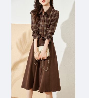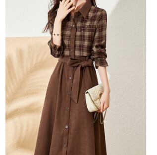 ウエスト部分にはリボンがあり、切り替えデザインで、ウエストマークも綺麗にできるので、女性らしさもアップ。また、グレンチェック柄がレトロでありながら、大人可愛い雰囲気も漂います。