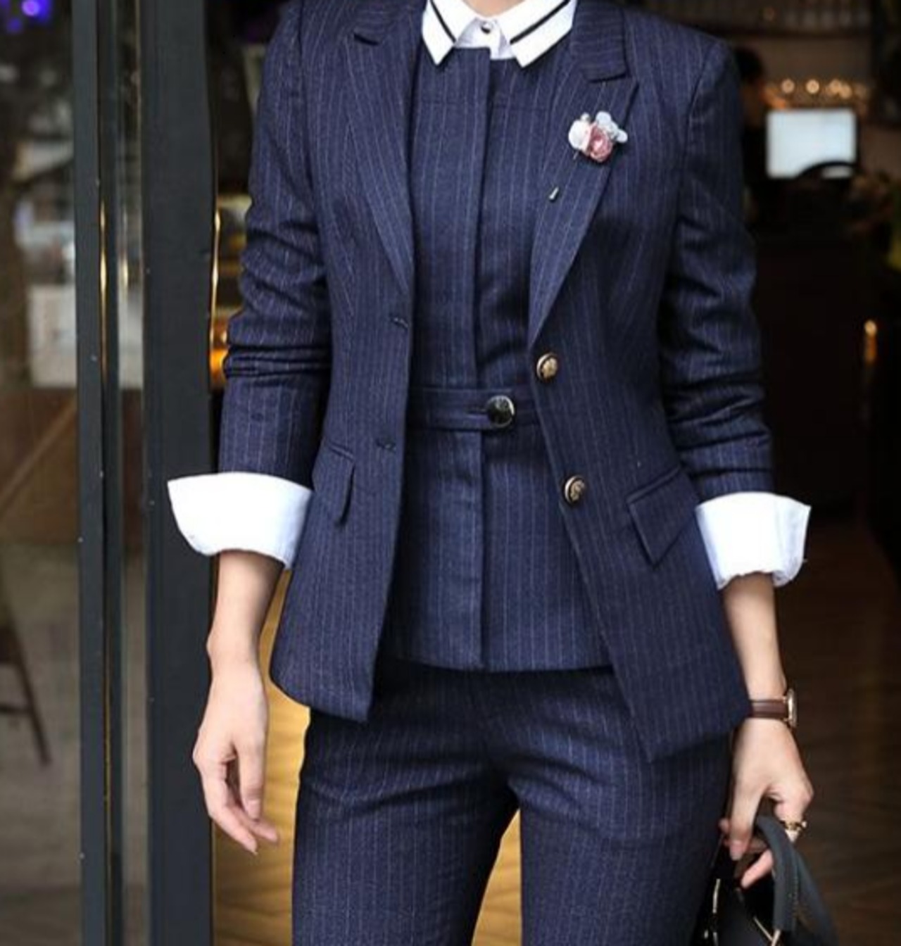 細身のブルージャケット+パンツのスーツセットです・