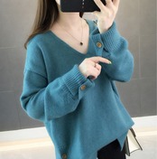 トップス セーター 袖あり 長袖 萌袖 Vネック ボタン かわいい 大人可愛い きれいめ シンプル カジュアル 大人 上品 おしゃれ お洒落 かっこいい 大人可愛い 大人女子 こなれ感 ラフ ガーリー モード系 エレガント 抜け感 無地 10代 20代 30代 40代 50代 60代 レディース オフィス OL 通勤 学生 通学 デート お出かけ 公園デビュー 女子会 イベント 旅行 レストラン ショッピング ご近所 カフェ 好印象 着回し 普段使い 重ね着 お揃い コーデ スタイル モテ 双子 韓国