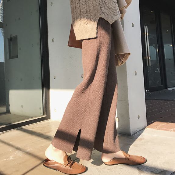 パンツ あったか ワイドパンツ ワイド ニット サイドスリット きれいめ シンプル カジュアル 大人 上品 おしゃれ お洒落 レトロ アジアン 大人女子 こなれ感 ラフ ルーズ モダン 存在感 抜け感 無地 秋 冬 10代 20代 30代 40代 50代 60代 デート お出かけ 公園デビュー 女子会 お泊まり 休日 イベント リゾート 旅行 高原 ホテル ガーデン レストラン 着回し 普段使い ファッション コーデ スタイル 暖かい 防寒 モテ 美脚 脚長 サイズ S M L XL 2XL 色 黒 茶色