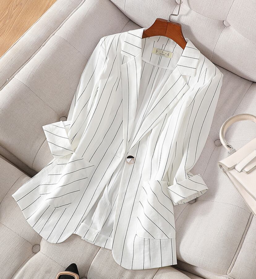 アウター デート モテアイテム ジャケット 薄手 長袖 コットン ストライプ 大人可愛い きれいめ 上品 おしゃれ かっこいい 大人可愛い ラブリー キュート ガーリー クール モード系 セクシー エレガント 存在感 フォーマル レディース 学生 通学 デート お出かけ 公園デビュー 女子会 休日 ホテル ショッピング 普段使い 双子 韓国系 オルチャン ファッション コーデ スタイル 美脚 脚長 トレンド 流行 インスタ映え S M L XL 2XL 3XL サイズ くすみカラー