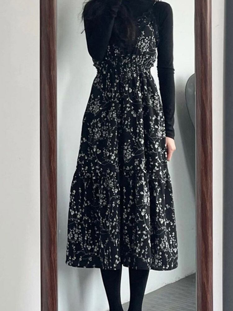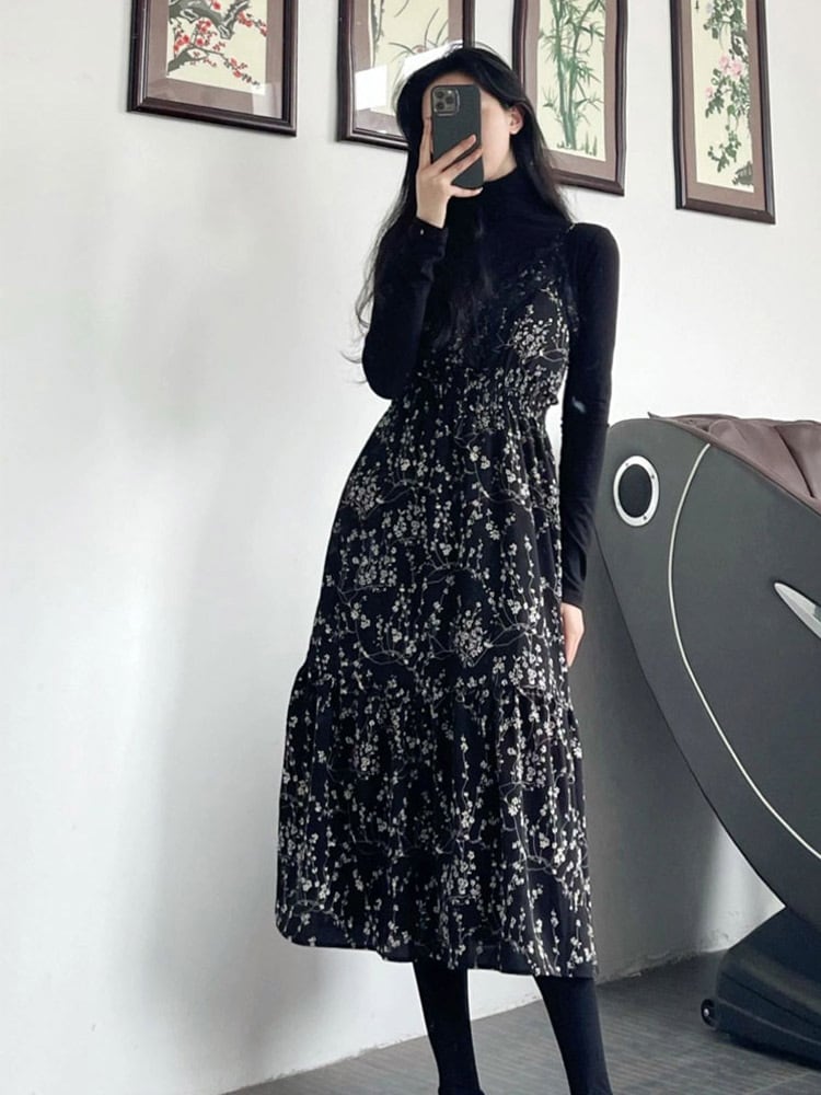 オータムセットアップ 花柄ワンピース ハイネックニットセーター トップス スカート ワンピース セットアップ ニットソー セーター プルオーバー オールインワン ロングスカート フレアスカート ロング ロング丈 7分丈 ミディアム丈 袖あり 長袖 ハイネック スリム タイト Aライン スマート ハイウエスト ニット 2点セット ツーピース かわいい 大人可愛い きれいめ シンプル カジュアル 大人 上品 おしゃれ お洒落 レトロ 大人可愛い 大人女子 こなれ感 ラブリー キュート ガーリー クール