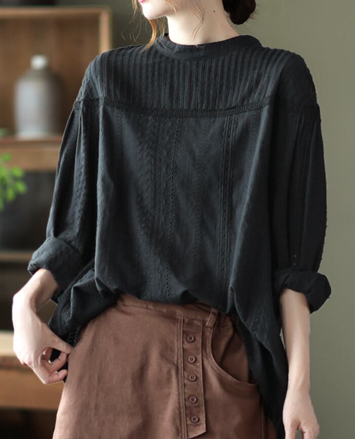 春と秋のガーリーなトップスは、大人っぽさの中にかわいらしさを演出します。シンプルなデザインなので、どんなボトムスにも合わせやすく、大人可愛いコーデにぴったりです。