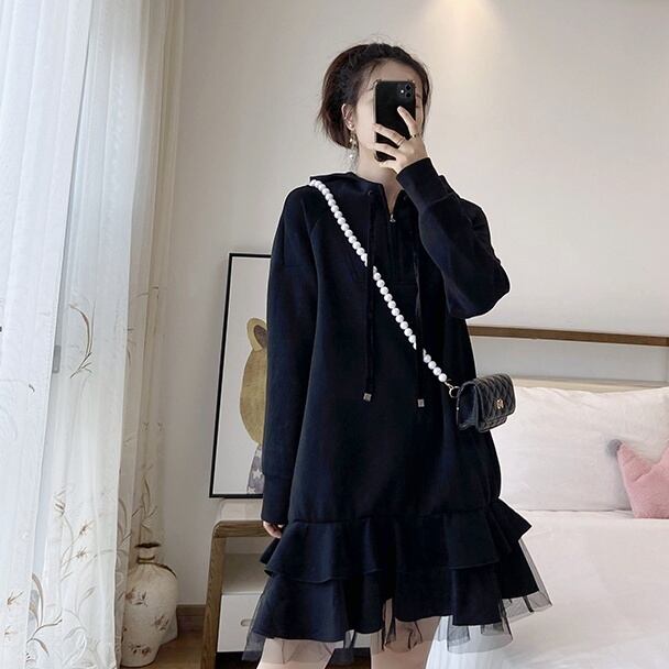 ワンピース ティアードワンピース ミニ丈 袖あり 長袖 フリル ティアード フード付き かわいい 大人可愛い きれいめ シンプル カジュアル 大人 上品 おしゃれ かっこいい 大人可愛い 大人女子 こなれ感 ラブリー キュート セクシー モダン 無地 春 秋 10代 20代 30代 レディース 女性用 通勤 学生 通学 デート お出かけ 女子会 休日 着回し 普段使い 韓国系 コーデ スタイル M L XL 2XL 3XL 4XL ブラック