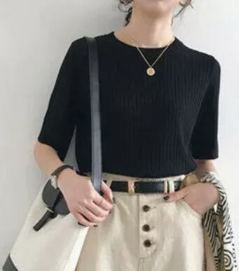 トップス デート モテアイテム ニットソー クルーネック 七分袖 コットン リブ 大人可愛い きれいめ 上品 おしゃれ かっこいい 大人可愛い ラブリー キュート ガーリー クール モード系 セクシー エレガント 存在感 フォーマル レディース 学生 通学 デート お出かけ 公園デビュー 女子会 休日 ホテル ショッピング 普段使い 双子 韓国系 オルチャン ファッション コーデ スタイル 美脚 脚長 トレンド 流行 インスタ映え S M L XL 2XL サイズ くすみカラー