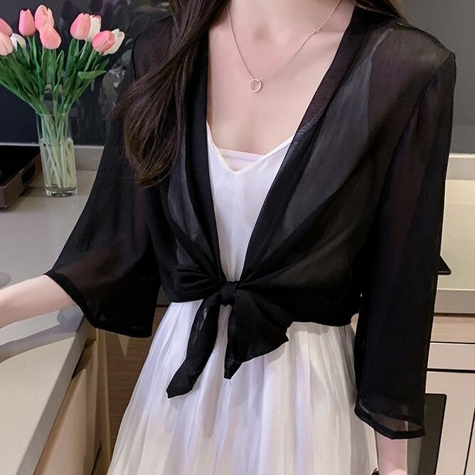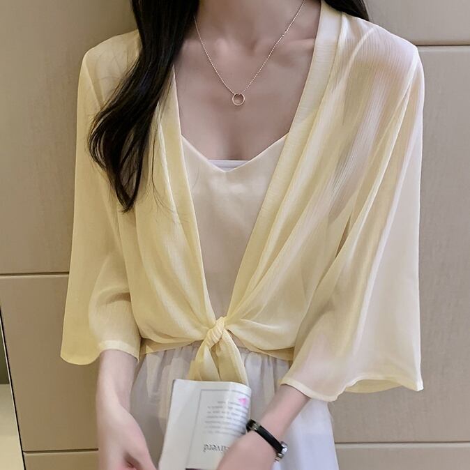 トップス ショール 袖あり 長袖 Vネック 襟なし 透け感 薄手 かわいい 大人可愛い きれいめ シンプル カジュアル 大人 上品 おしゃれ かっこいい 大人可愛い 大人女子 こなれ感 ラブリー キュート モダン 無地 春 秋 10代 20代 30代 レディース 女性用 通勤 学生 通学 デート お出かけ 女子会 休日 着回し 普段使い 韓国系 コーデ スタイル S M L XL 2XL ホワイト ブラック イエロー