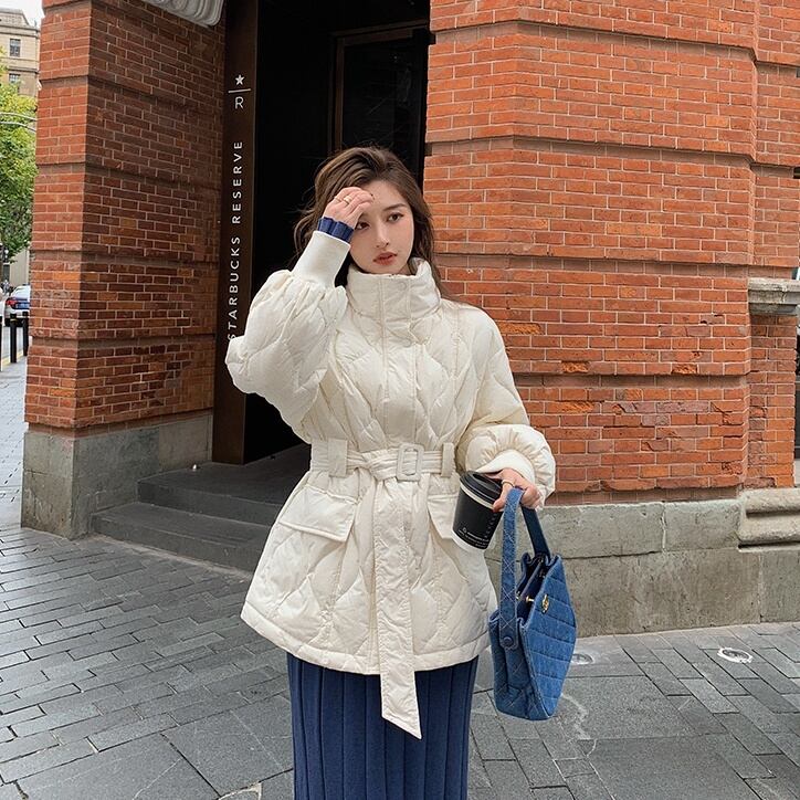 アウター ジャケット 袖あり 長袖 ハイネック 襟なし ベルト ダウン かわいい 大人可愛い きれいめ シンプル カジュアル 大人 上品 おしゃれ かっこいい 大人可愛い 大人女子 こなれ感 ラブリー キュート モダン 無地 春 秋 冬 10代 20代 30代 レディース 女性用 通勤 学生 通学 デート お出かけ 女子会 休日 着回し 普段使い 韓国系 コーデ スタイル 暖かい 防寒 S M L XL ホワイト ブラック