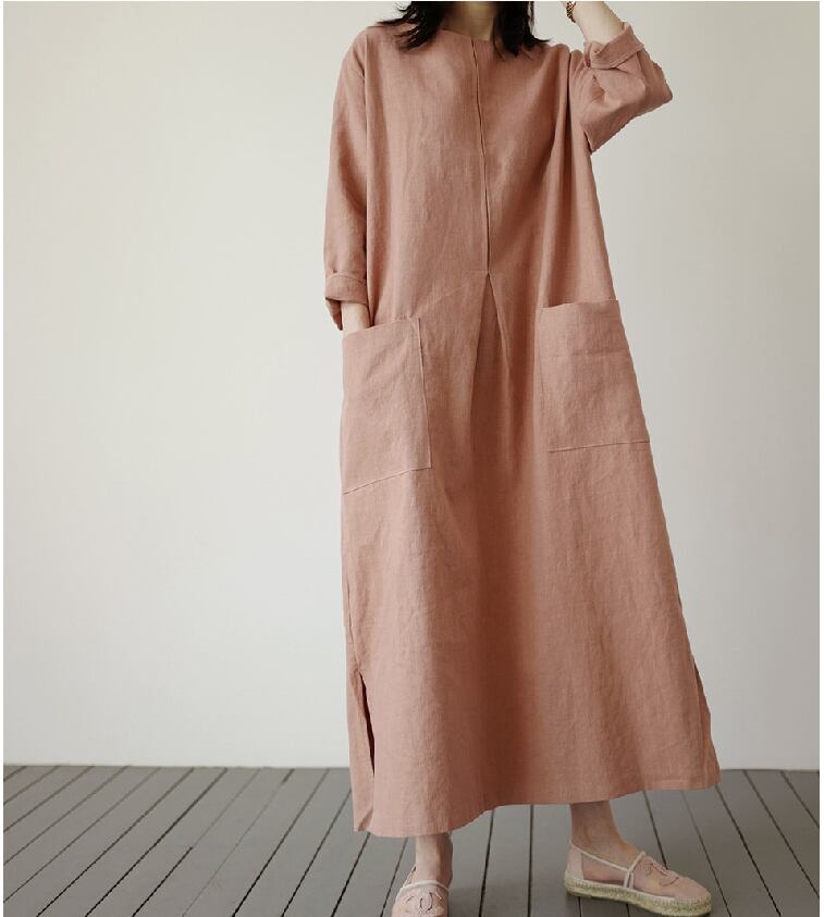 シンプルワンピース リネン生地ワンピース カジュアルワンピース 七分袖ワンピース スカート ワンピース プルオーバー オールインワン ロングスカート フレアスカート 膝下 ロング ロング丈 7分丈 ミディアム丈 袖あり 7分袖 七分袖 Uネック ボートネック スリム ストレート Iライン スマート ポケット 綿 リネン かわいい 大人可愛い きれいめ カジュアル 上品 おしゃれ かっこいい 大人可愛い 大人女子 こなれ感 ガーリー ルーズ クール モード系 モダン 主役級 存在感 無地 春 夏 秋