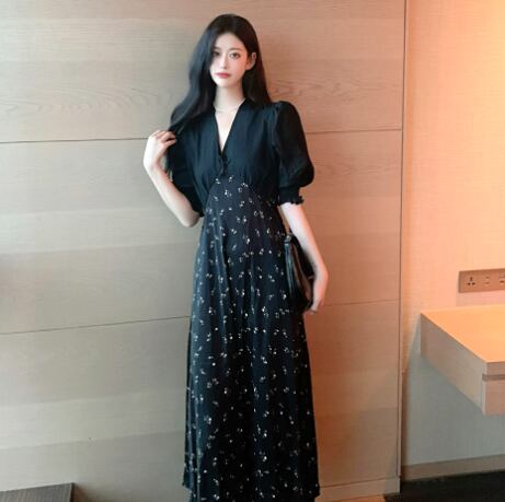ワンピース モテアイテム 大きいサイズ マキシ マキシ丈 パフスリーブ Vネック 切り替えデザイン ハイウエスト 薄手 かわいい 大人可愛い きれいめ 上品 おしゃれ お洒落 レトロ 大人女子 ラブリー キュート ガーリー 個性的 エレガント 存在感 とろみ感 花柄 小花柄 フラワー 夏 10代 20代 30代 40代 デート お出かけ 公園デビュー 女子会 お泊まり 休日 パーティー イベント リゾート 旅行 ホテル レストラン モテ 脚長 M L XL 2XL 3XL 4XL 大きいサイズ 大きめ 黒
