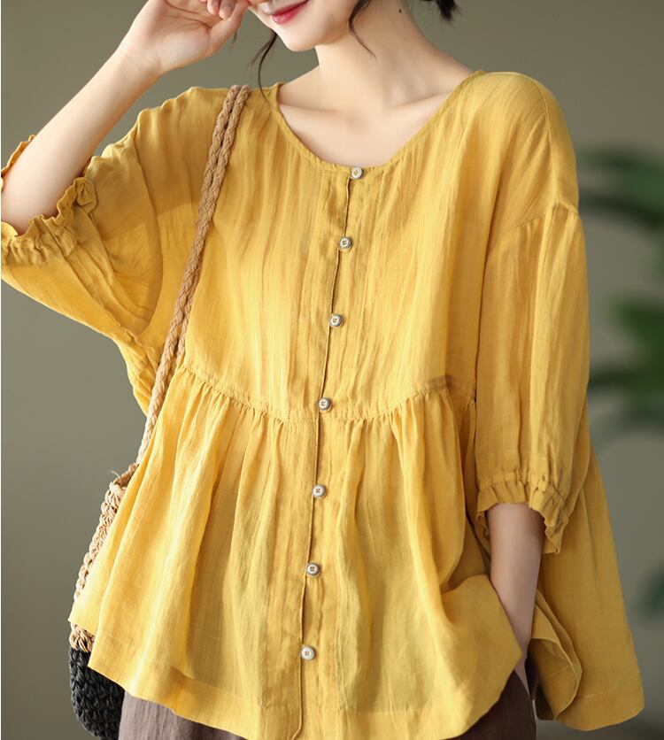 レトロな雰囲気が漂うリネンシャツ。くすみカラーが大人っぽく、春秋コーデにぴったり。7分袖や長袖で、季節に合わせて着回せます。Vネックとフレアシルエットで、女性らしい印象に。ガーリーなコーデにはもちろん、カジュアルなコーデにも合わせやすいアイテムです。