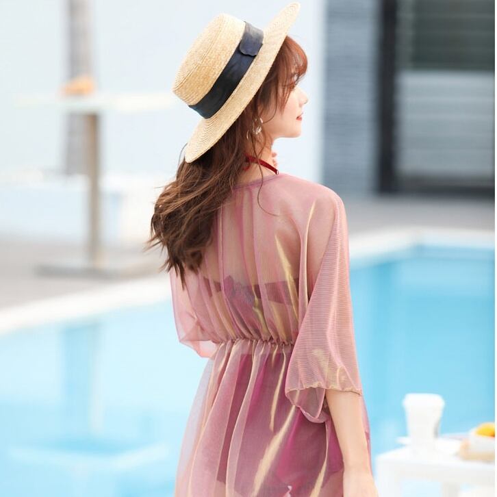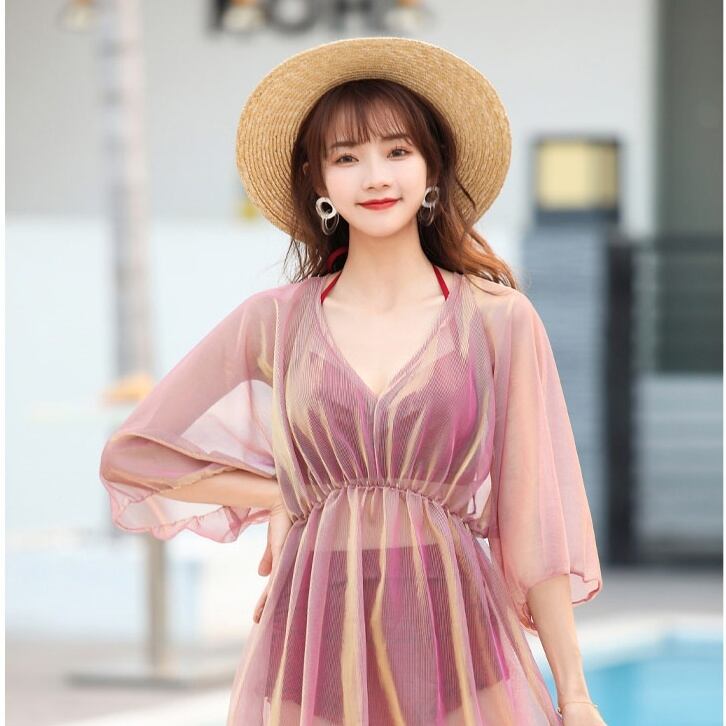 透け感のあるラッシュガードとホルターネックビキニのアイテムセット
