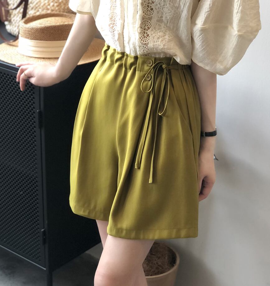 ボトムス デート モテアイテム ショートパンツ ハイウエスト ウエストゴム レーヨン 大人可愛い きれいめ 上品 おしゃれ かっこいい 大人可愛い ラブリー キュート ガーリー クール モード系 セクシー エレガント 存在感 フォーマル レディース 学生 通学 デート お出かけ 公園デビュー 女子会 休日 ホテル ショッピング 普段使い 双子 韓国系 オルチャン ファッション コーデ スタイル 美脚 脚長 トレンド 流行 インスタ映え M L XL サイズ くすみカラー
