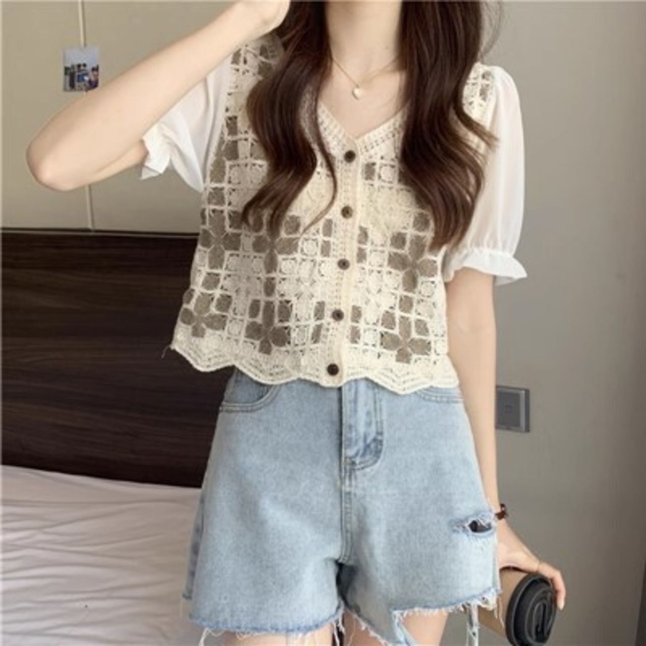 半袖のニットカーディガン