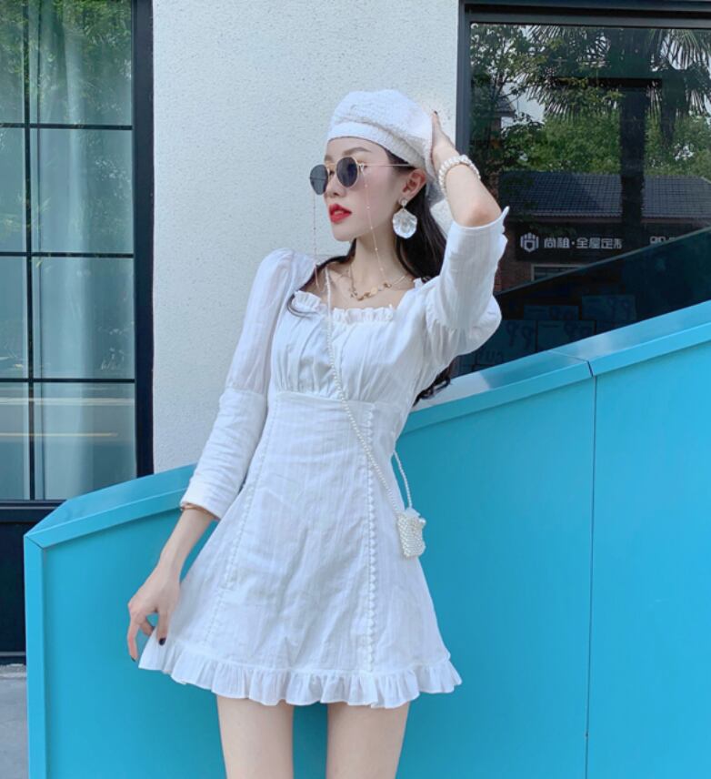 ワンピース デート モテアイテム フレアワンピース 七分袖 リボン レース コットン 大人可愛い きれいめ 上品 おしゃれ かっこいい 大人可愛い ラブリー キュート ガーリー クール モード系 セクシー エレガント 存在感 フォーマル レディース 学生 通学 デート お出かけ 公園デビュー 女子会 休日 ホテル ショッピング 普段使い 双子 韓国系 オルチャン ファッション コーデ スタイル 美脚 脚長 トレンド 流行 インスタ映え S M L XL サイズ くすみカラー