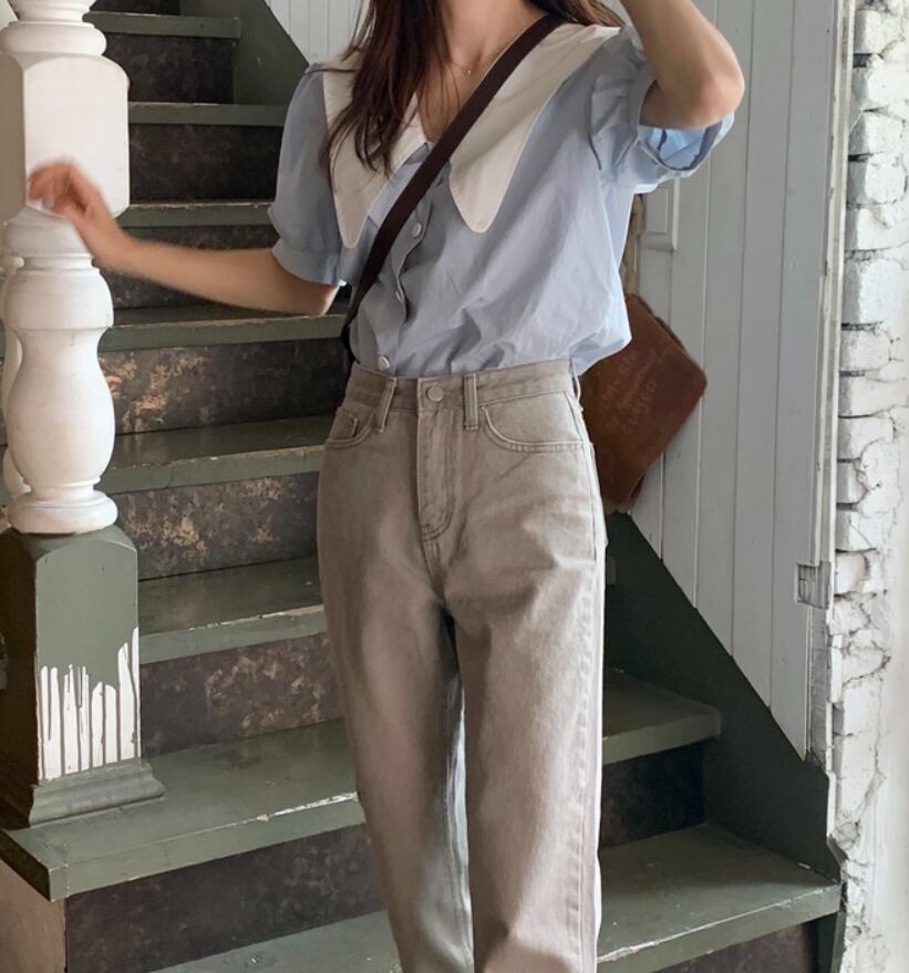 トップス デート モテアイテム シャツ ブラウス 半袖 襟付き コットン 大人可愛い きれいめ 上品 おしゃれ かっこいい 大人可愛い ラブリー キュート ガーリー クール モード系 セクシー エレガント 存在感 フォーマル レディース 学生 通学 デート お出かけ 公園デビュー 女子会 休日 ホテル ショッピング 普段使い 双子 韓国系 オルチャン ファッション コーデ スタイル 美脚 脚長 トレンド 流行 インスタ映え S M L XL 大人カラー サイズ くすみカラー