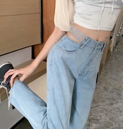 ボトムス デート モテアイテム ハイウエスト クロップドパンツ デニム コットン 綿 かわいい 大人可愛い きれいめ シンプル カジュアル 大人 上品 おしゃれ かっこいい 大人可愛い 大人女子 こなれ感 ラフ ラブリー キュート モダン 無地 春 秋 10代 20代 30代 レディース 女性用 通勤 学生 通学 デート お出かけ 女子会 休日 着回し 普段使い 韓国系 コーデ スタイル S M L ライトブルー サイズ ブルー 大人カラー