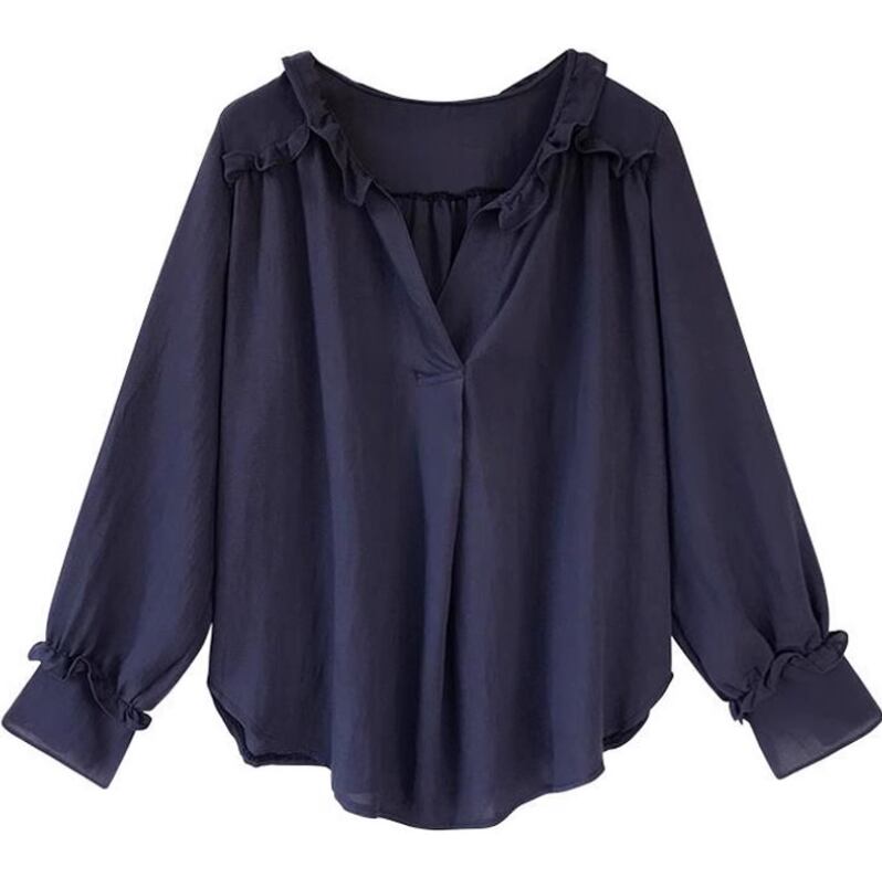 トップス モテアイテム エレガント ゆったり サイズ豊富 大きいサイズ シャツ ブラウス 長袖 Vネック 襟付き フリル 通気性 ギャザー ギャザー使い 薄手 きれいめ シンプル 大人 上品 おしゃれ レトロ 大人女子 こなれ感 ガーリー ルーズ モダン 存在感 抜け感 無地 春 夏 秋 10代 20代 30代 40代 50代 オフィス 通勤 通学 デート お出かけ 女子会 お泊まり 休日 イベント リゾート 旅行 高原 ホテル ガーデン レストラン 着回し 普段使い M L XL 2XL 3XL 4XL
