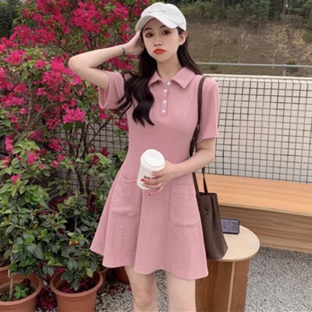 ワンピース ポロワンピース ひざ丈 袖あり 半袖 ラウンドネック 襟付き フレア Aライン かわいい 大人可愛い きれいめ シンプル カジュアル 大人 上品 おしゃれ かっこいい 大人可愛い 大人女子 こなれ感 ラフ ラブリー キュート モダン 無地 春 秋 10代 20代 30代 レディース 女性用 デート お出かけ 女子会 休日 着回し 普段使い 韓国系 コーデ スタイル M L XL 2XL 3XL 4XL ブラック グリーン ピンク