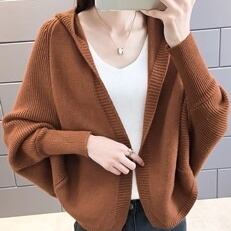 長袖のフード付きニットカーディガン