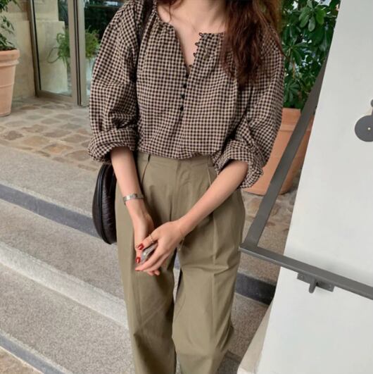 トップス シャツ ブラウス 袖あり 長袖 ストレート レース かわいい 大人可愛い きれいめ シンプル カジュアル 大人 上品 おしゃれ お洒落 かっこいい レトロ 大人女子 こなれ感 ラブリー キュート ガーリー エレガント 主役級 存在感 とろみ感 抜け感 無地 春 夏 秋 冬 オールシーズン 10代 20代 30代 レディース デート お出かけ 女子会 休日 着回し 普段使い 韓国 韓国系 オルチャン ファッション コーデ スタイル 楽ちん モテ 定番 トレンド 流行 インスタ映え チェック柄