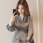 トップス ブラウス 袖あり 長袖 Vネック かわいい 大人可愛い きれいめ シンプル カジュアル 大人 上品 おしゃれ かっこいい 大人可愛い 大人女子 こなれ感 ラフ ラブリー キュート モダン フォーマル 柄 チェック柄 春 秋 10代 20代 30代 レディース 女性用 デート お出かけ 女子会 休日 着回し 普段使い 韓国系 コーデ スタイル S M ブラック