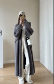 もこもこ素材のロング丈カーディガン。