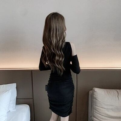 ワンピース ミニ丈 袖あり 長袖 ワンショルダー Iライン かわいい 大人可愛い きれいめ シンプル カジュアル 大人 上品 おしゃれ かっこいい 大人可愛い 大人女子 こなれ感 ラブリー キュート セクシー モダン 無地 春 秋 10代 20代 30代 レディース 女性用 通勤 学生 通学 デート お出かけ 女子会 休日 着回し 普段使い 韓国系 コーデ スタイル S M L XL ブラック レッド