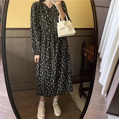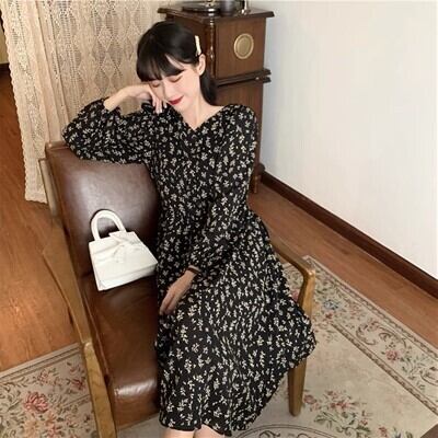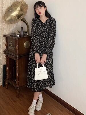 ワンピース フレアワンピース 袖あり 長袖 Vネック 襟なし フレア かわいい 大人可愛い きれいめ シンプル カジュアル 大人 上品 おしゃれ かっこいい 大人可愛い 大人女子 こなれ感 ラフ ラブリー キュート モダン 柄 ボタニカル 春 秋 10代 20代 30代 レディース 女性用 通勤 学生 通学 デート お出かけ 女子会 休日 着回し 普段使い 韓国系 コーデ スタイル フリーサイズ ホワイト ブラック