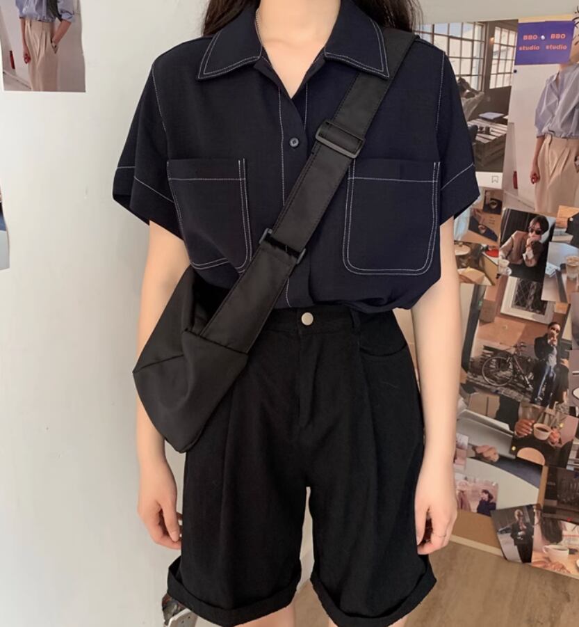 トップス デート モテアイテム シャツ カットソー 半袖 インディゴ コットン ポケット 大人可愛い きれいめ 上品 おしゃれ かっこいい 大人可愛い ラブリー キュート ガーリー クール モード系 セクシー エレガント 存在感 フォーマル レディース OL 通勤 学生 デート お出かけ 公園デビュー 女子会 休日 ホテル ショッピング 普段使い 双子 韓国系 オルチャン ファッション コーデ スタイル 暖かい 防寒 トレンド インスタ映え 大人カラー S M L XL 2XL サイズ 大人カラー